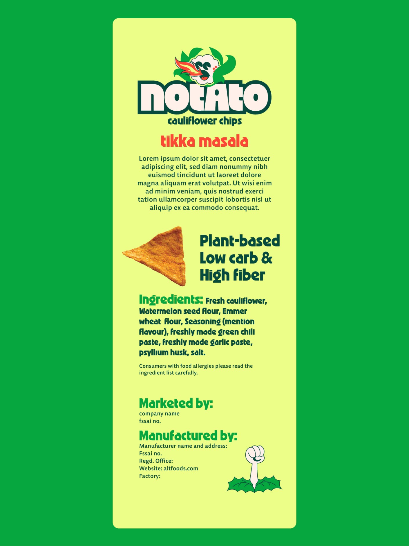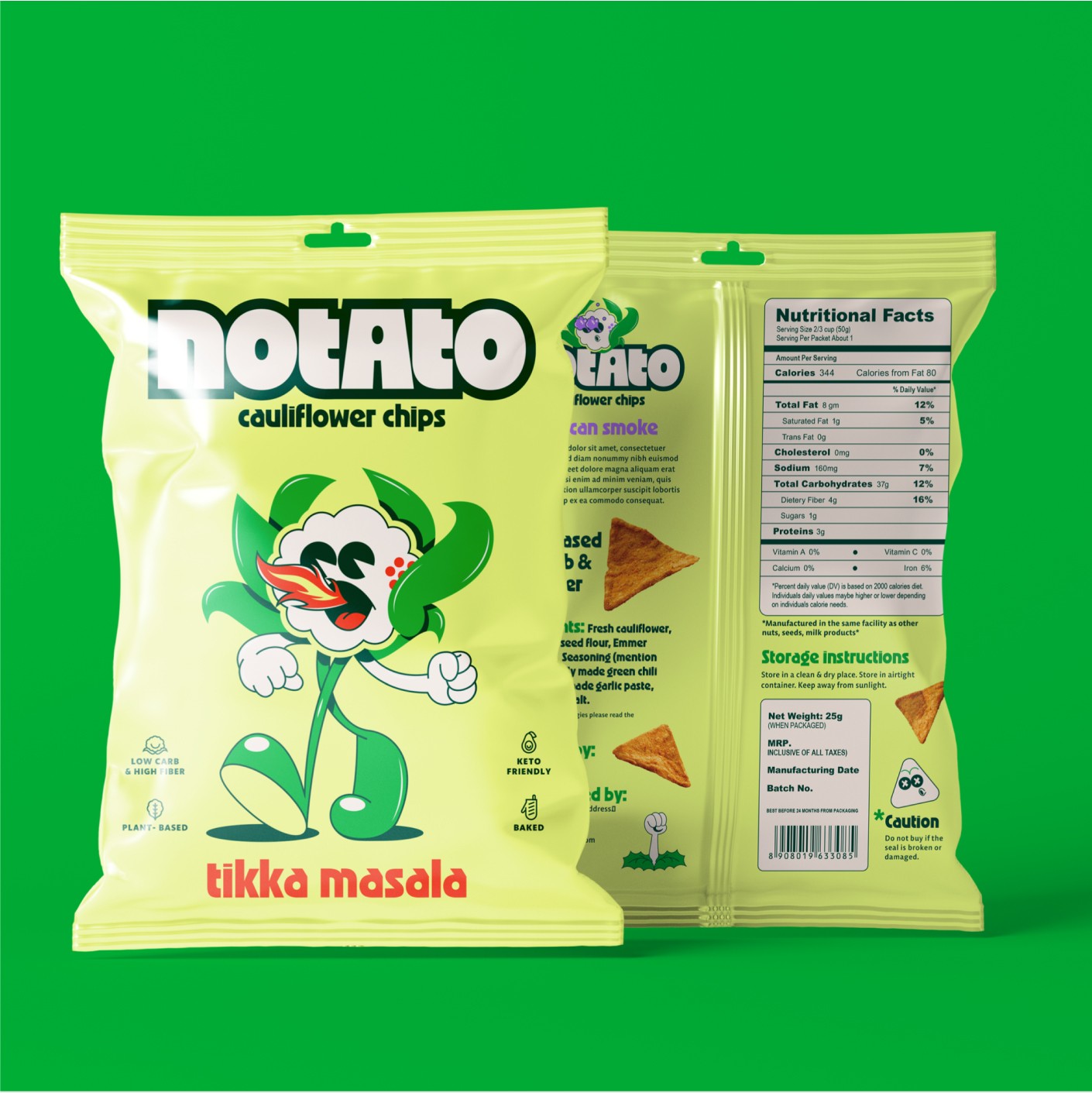 Notato, the new kid on the snack block, was ready to shake up the chip aisle with their cauliflower chips. But how do you make cauliflower the belle of the ball in a world dominated by potato chip heavyweights? They needed a brand identity and packaging design that could turn heads and tickle taste buds.